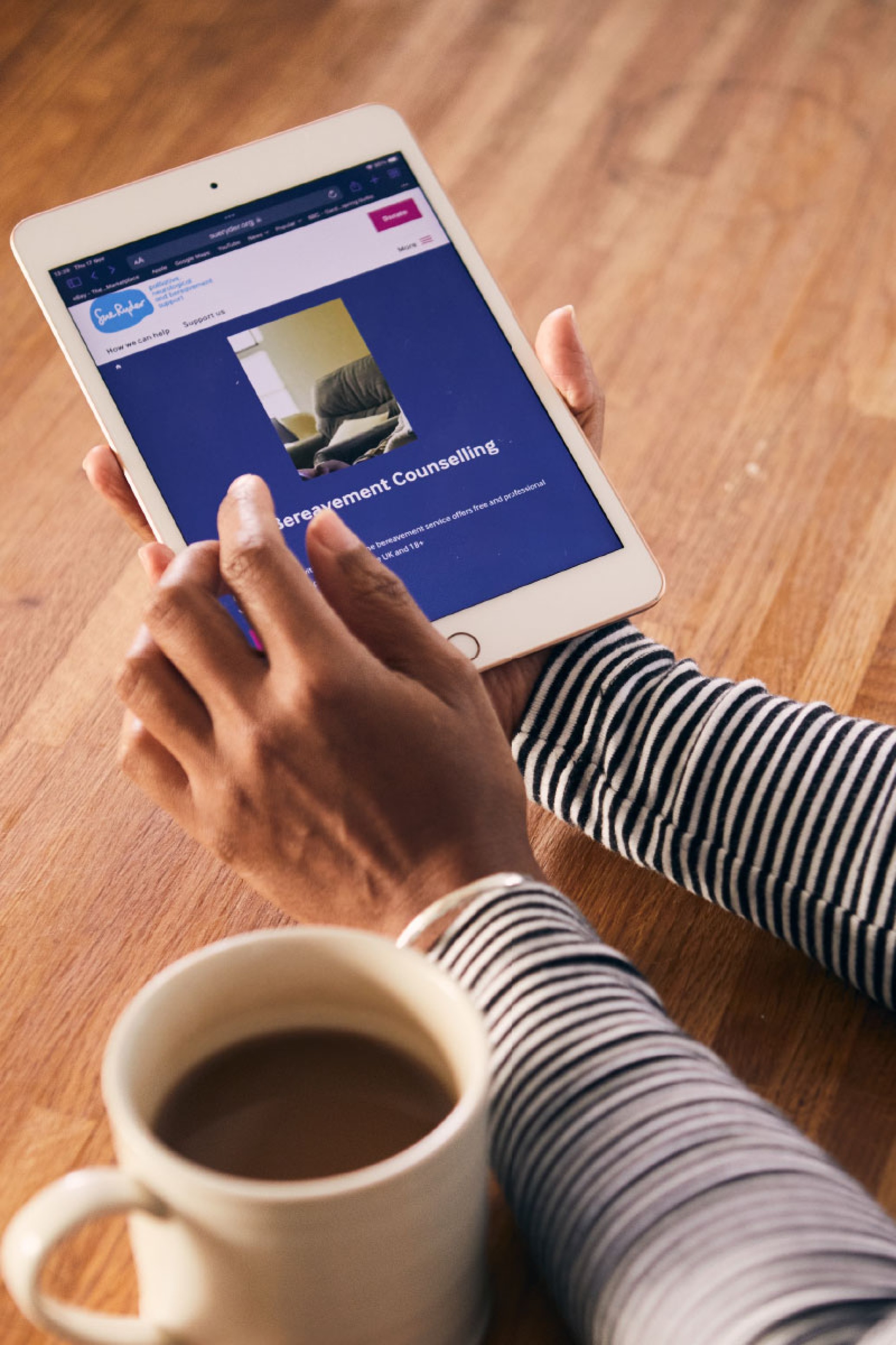 Capture a suite of bespoke imagery for Sue Ryder's bereavement support services, reflecting the emotions and dynamics of individuals coping with loss. Show online service usage and daily activities while maintaining sensitivity. Choose locations resembling typical homes to ensure relatability. Images will be used in clinical, online, social media, and fundraising contexts.