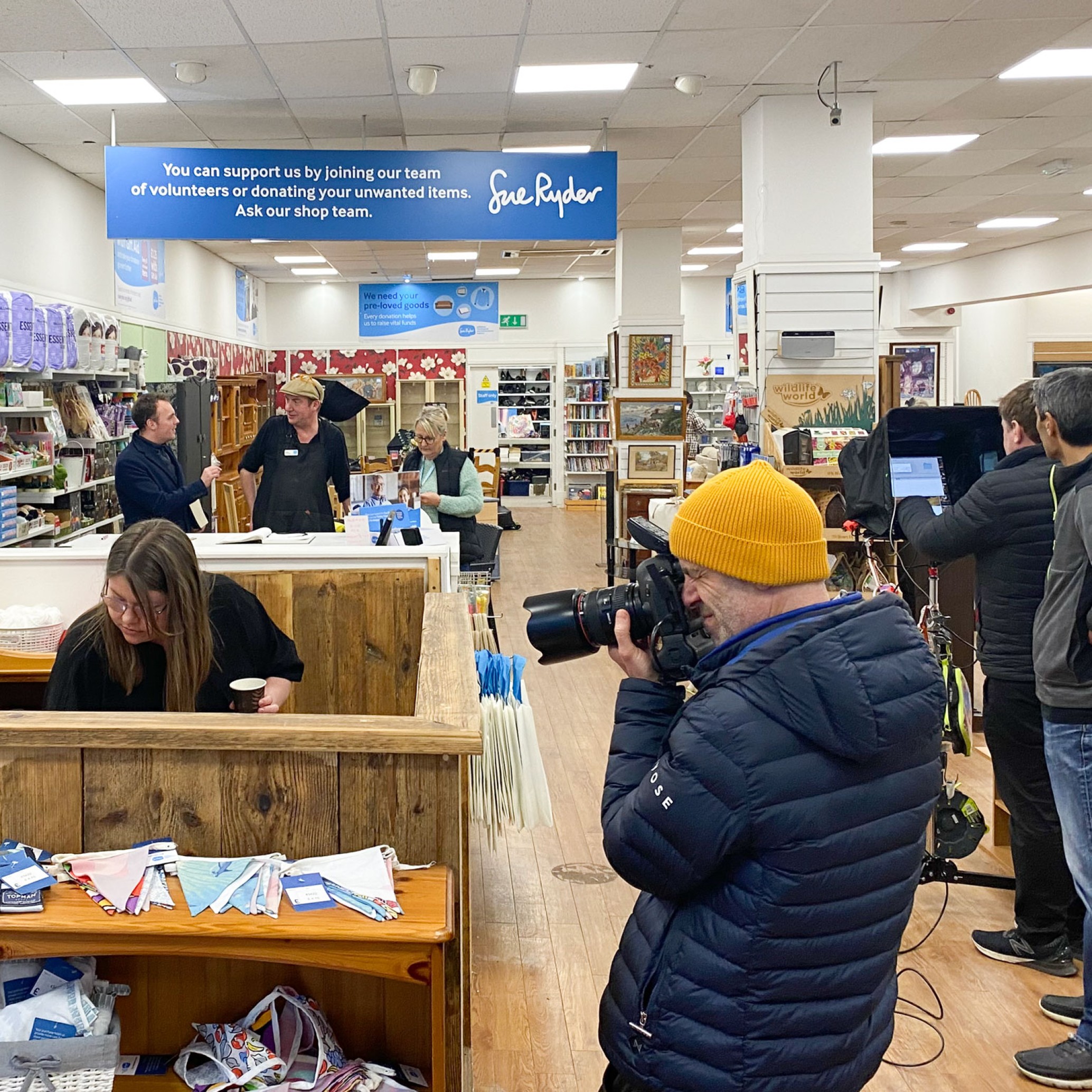 Sue Ryder commissioned us to build an image library for their retail space, highlighting diverse services like the main shop floor, back-of-house organisation, up-cycling station, and delivery services. Challenges included conducting a bustling store photoshoot without closure, capturing various services, and completing an extensive shot list within a single day.