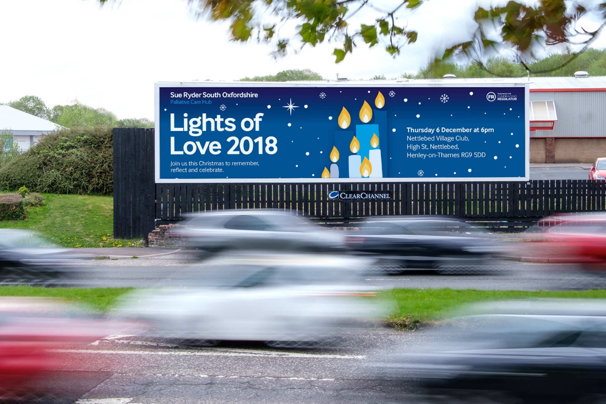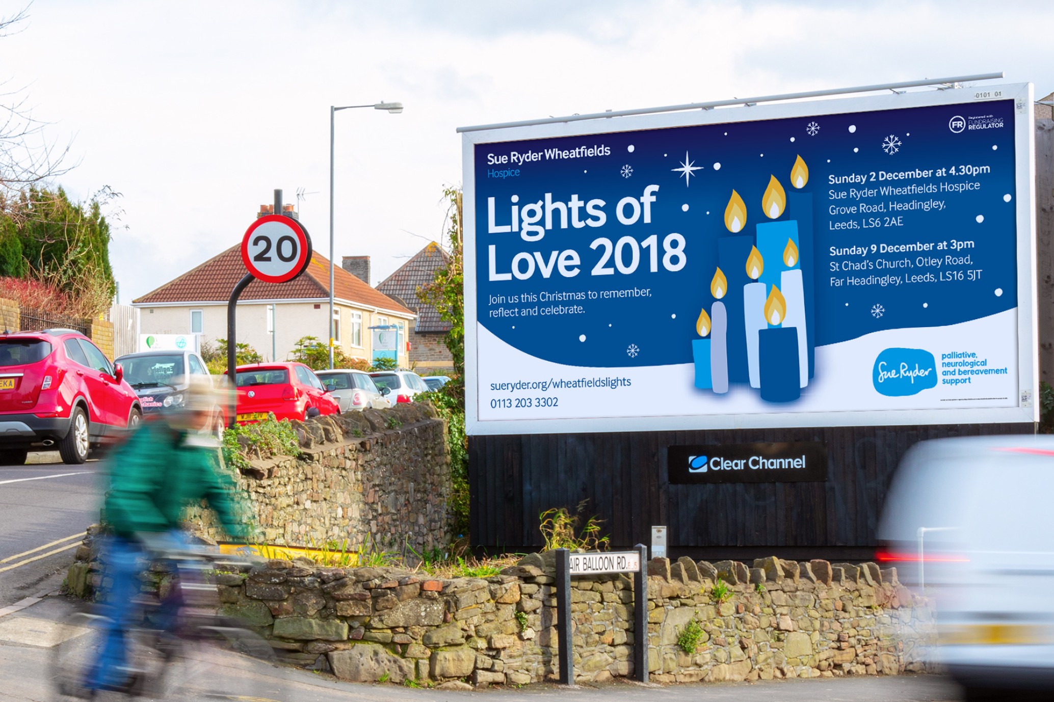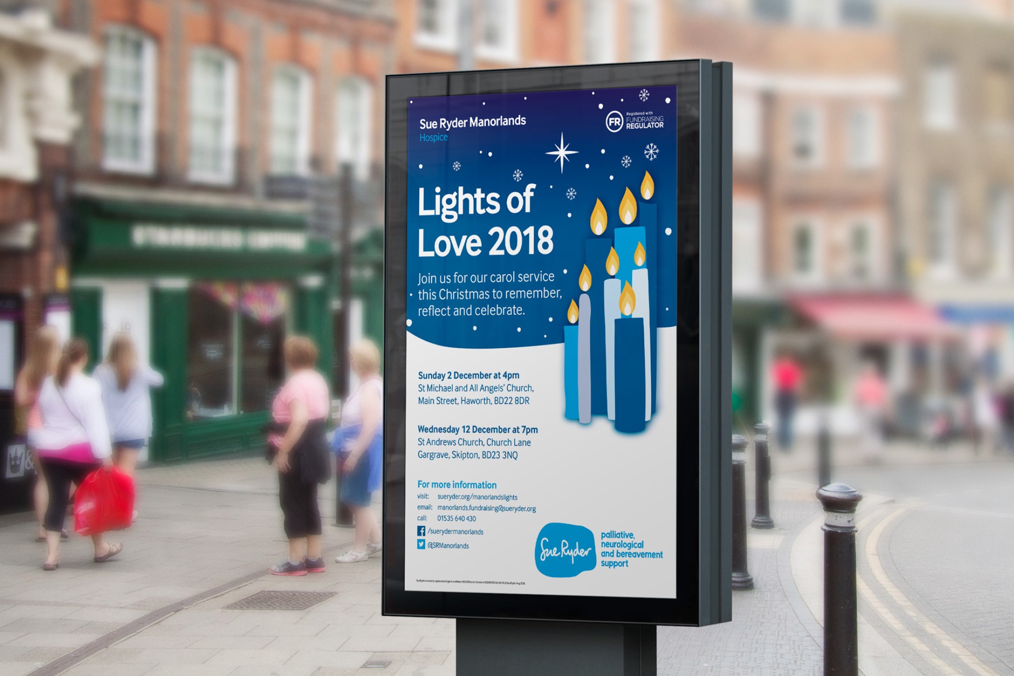 We were asked to create a campaign for Sue Ryder's flagship Christmas fundraising event 'Lights of Love'. This is an annual event where people light a candle – physically or virtually – in remembrance of people that they have lost. The hospices all have special days for this, often with large trees, where everyone gets together and the community of the hospices come to life.