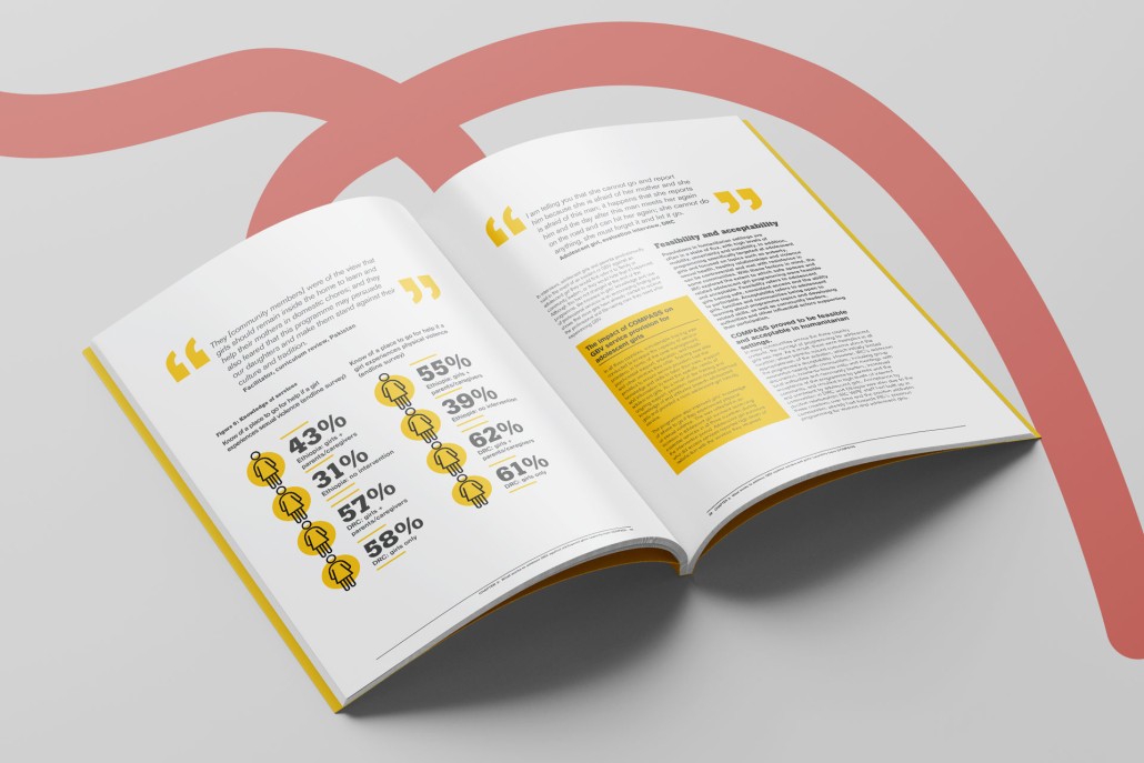 The International Rescue Committee (IRC) tasked us with designing a suite of reports that presented the findings from their Compass programme research in a way that was both engaging and accessible. These five reports were intended to be flagship products for the IRC, demanding high visibility and impact. The brief emphasised the need for each report to stand alone while simultaneously fitting into a cohesive collection. It was also crucial that the documents be multi-layered, enabling different audiences to access the information at varying levels through the use of imagery, standout boxes, infographics, and quotes.
