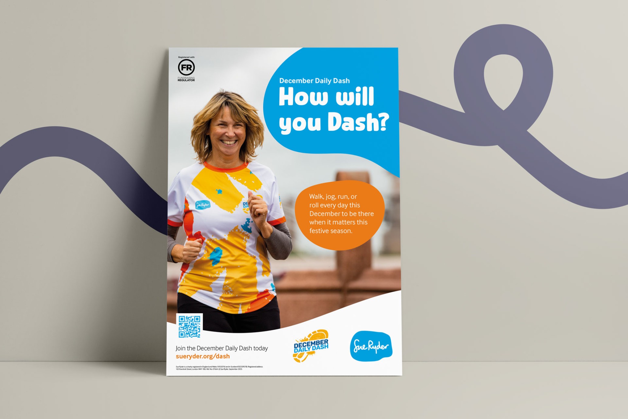 We were tasked with redesigning the 'December Dash' fundraising pack, a long-standing flagship virtual event for Sue Ryder where, this year, participants were asked to ‘walk, jog, run or roll every day this December to raise vital funds. We needed to approach this using their newly completed brand refresh guidelines, which involved updating all imagery and copy to align with the organisation's fresh branding approach whilst keeping the existing logo.