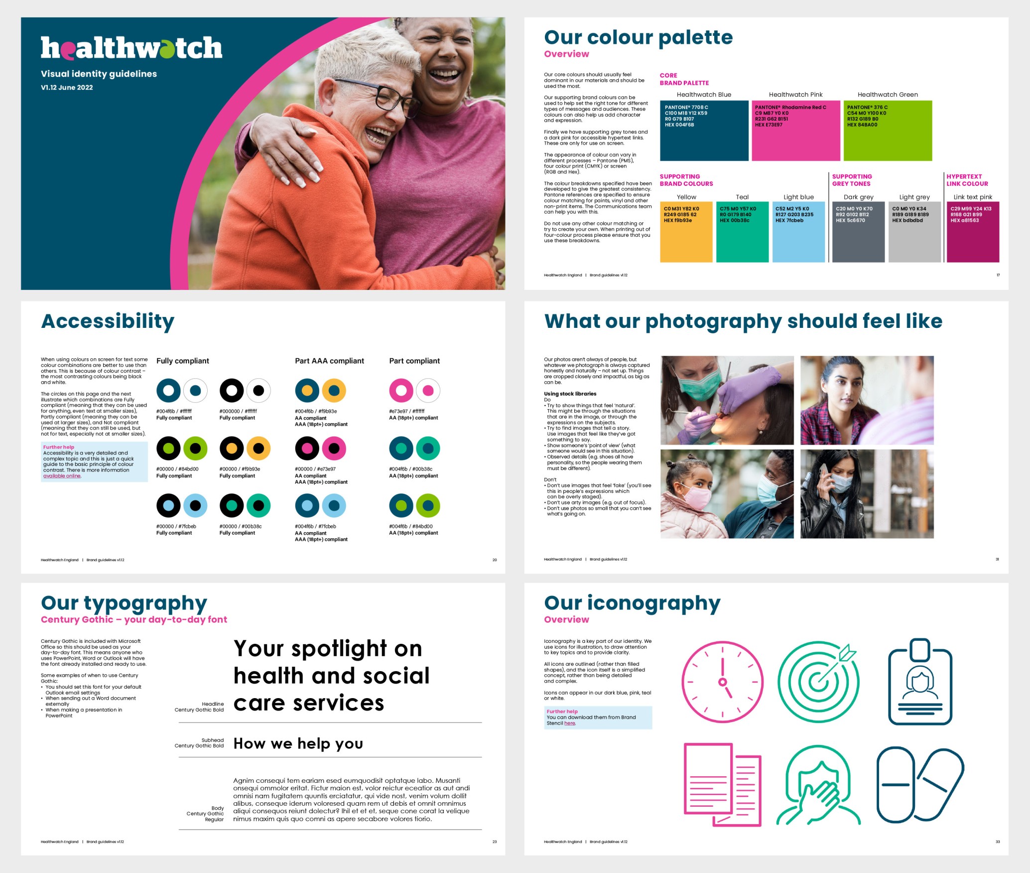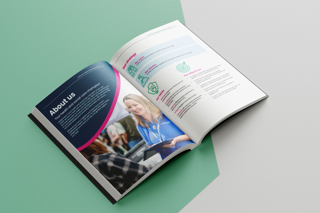 Revitalise Healthwatch's visual identity to align with a new focus and key messages. The challenge: modernise without compromising the brand's strong local presence among 150 audiences. Respect regional differences, ensuring fonts, colours, and imagery meet accessibility standards. Effectively convey evidence-based reports and community engagement materials in the updated identity.