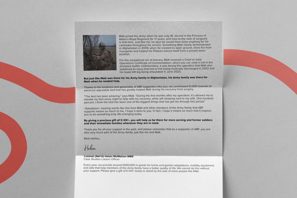 We crafted an engaging letter from one of ABF’s Liaison Officers, who work closely with the ex-Servicemen and women the charity supports.