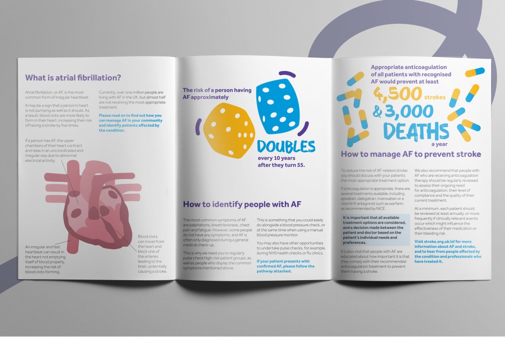 Produce a DM pack targeting GPs to raise awareness of treatable Atrial Fibrillation. Over one million people in the UK have this common irregular heartbeat, leading to a higher stroke risk if untreated. Working with The Stroke Association, we presented hard facts and infographics to emphasize early detection, effectively reaching and informing GPs.