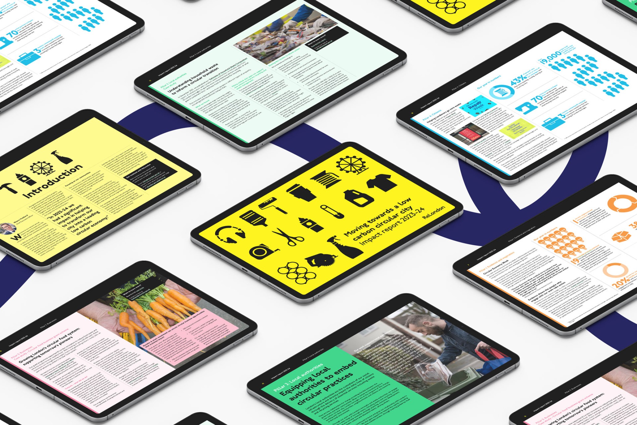 ReLondon asked us to help bring their second annual impact report to life by providing copy editing and graphic design support. The report, covering the 2023–2024 financial year, needed to clearly show who ReLondon is, what they do, and the difference they’re making in pushing London towards a more circular economy. They gave us the data and a draft of the content, and our job was to edit the copy, come up with a couple of design options based on their existing style, and create a final version that worked both digitally and in print.