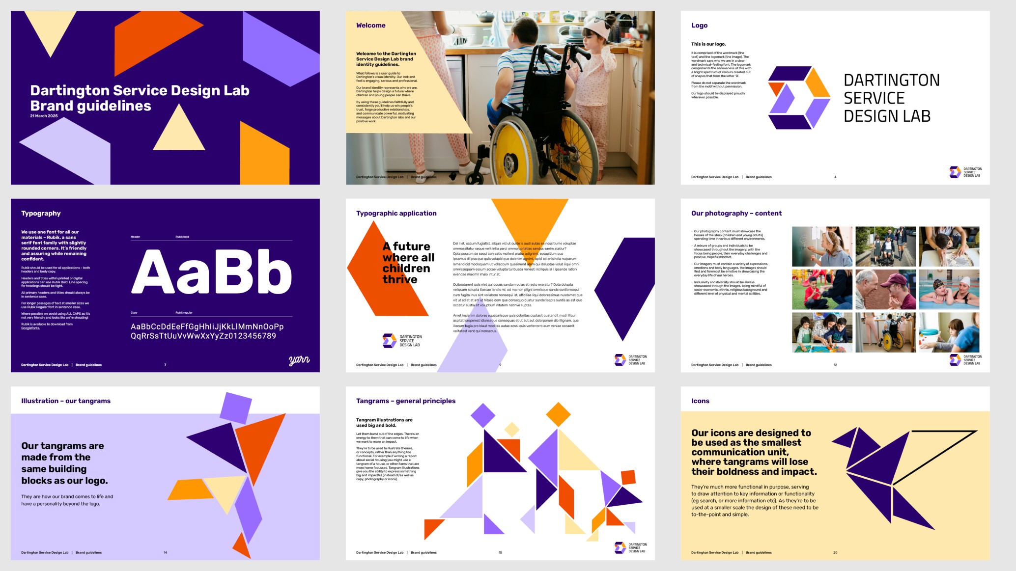 We developed three initial concept routes for Dartington, with their final choice inspired by Tangrams. Using individual brand shapes and illustrations derived from this concept, we created a visual identity with a clear, consistent storyline that ties all assets and applications together in an innovative and recognisable way. Once the design direction was finalised, we delivered a suite of branded materials, including a PowerPoint presentation template, social media post designs, roller banners, various report templates, custom illustrations and icons, and the final set of brand guidelines.