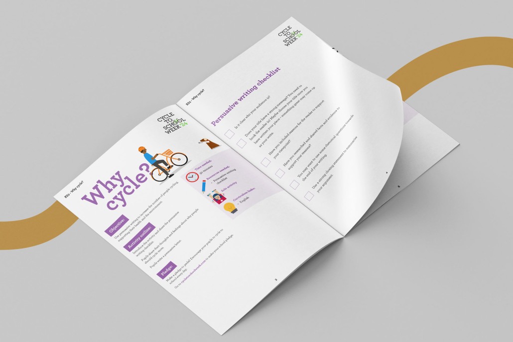 We were asked by Bikeability to redesign the materials for their flagship Cycle to School Week 2024 campaign. The activities and challenges are aimed at early years and key stages 1 and 2, and the resources are sent out to participating schools and are designed to empower the schools, teachers, teaching assistants, and other stakeholders with engaging content that integrates Cycle to School Week into lesson plans and activities.