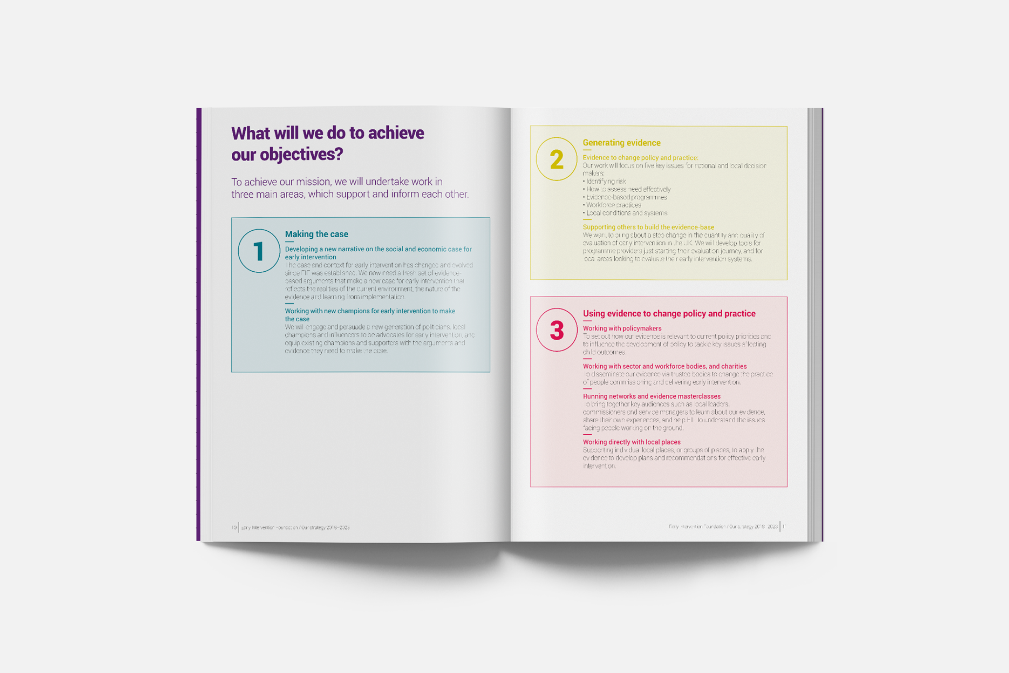 The strategic summary was seen as a lasting resource that reflected EIF's credibility and leadership in the early intervention space. The clean design allowed policymakers and practitioners to engage with the material easily, while the centre spread highlighted their core message perfectly.