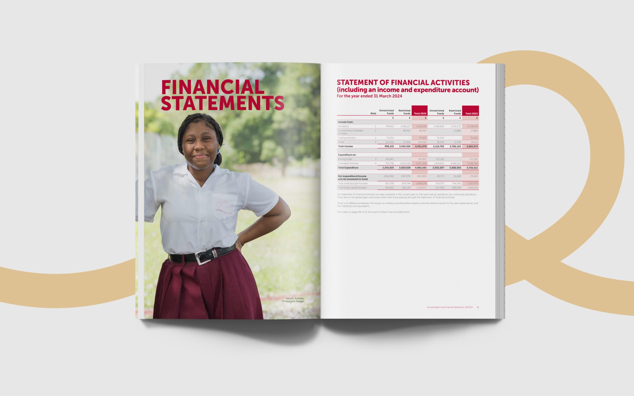 We worked closely with The King’s Trust International team to gather and interpret the key content, including financial data, case studies, and impact stories. Our design team adapted the previous report’s layout to reflect The King’s Trust’s new identity, ensuring the brand’s evolving look and feel was consistently represented. We provided copyediting and proofing services, collaborated on imagery selection, and applied the updated brand guidelines throughout the report to deliver a cohesive and engaging publication.