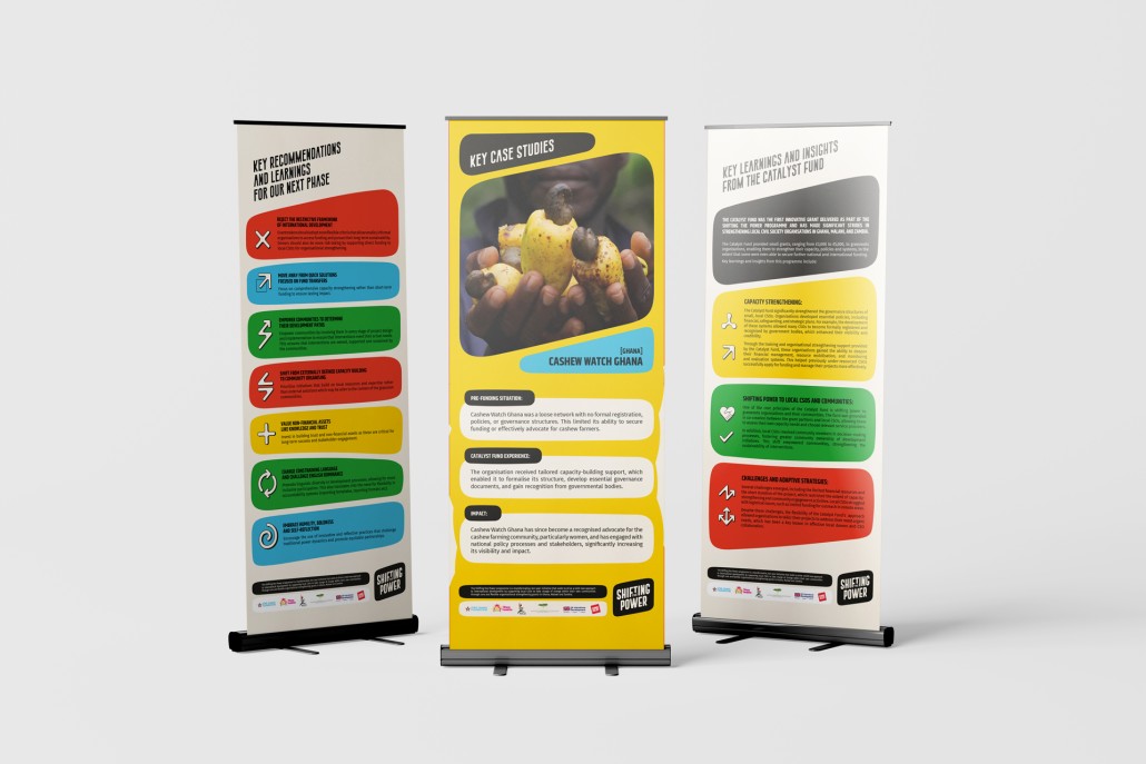 Comic Relief asked us to design a visual identity and materials for their flagship funding programme called Shifting the Power (StP) The programme is a 10 year civil society strengthening programme, co-funded by the Foreign, Commonwealth & Development Office (FCDO) with an overarching aim of shifting greater power to civil society, invests in organisational strengthening of civil society organisations in Ghana, Zambia and Malawi, and offers training and support in local resource mobilisation. The assets needed to engage and inspire the audiences and highlight key achievements, case studies, and recommendations.